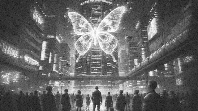 首都、東公都の中心部、国立高次元情報科学研究所(高研)の巨大なビル壁面に、常にその姿を変えながら舞う光の巨蝶がある。メディアアーティストで、高研の研究者でもある[あなたの名前]氏が手掛けたこの作品は、...